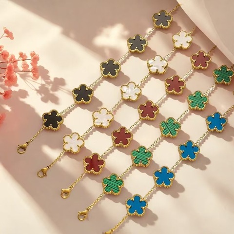 Großhandel Galvanisch Plattiertes 18 Karat Gold Hochwertiger Nicht Verblassender Damenschmuck, Vierblättriges Kleeblatt Armband aus Edelstahl