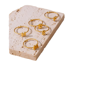 Women's Adjustable Resizable Chunky Gold Stainless Steel Initial Ring Cute Owl-Shaped Alphabet Jewelry Trendy Wedding Party