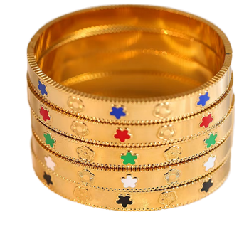 Wholesale 18K Gold Five-Pointed Star and Five-Leaf Flower INS Stainless Steel Bracelet Light Luxury Fashion Bangles