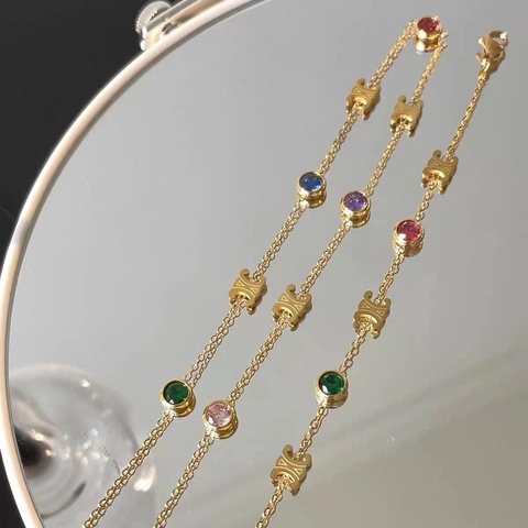 流行のゴールドステンレスネックレスブレスレットセット女性用おしゃれなカラフルな石クラビクルチェーンボールパターン非フェード